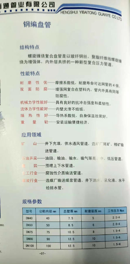 钢骨架(钢编)盘管、煤矿用管